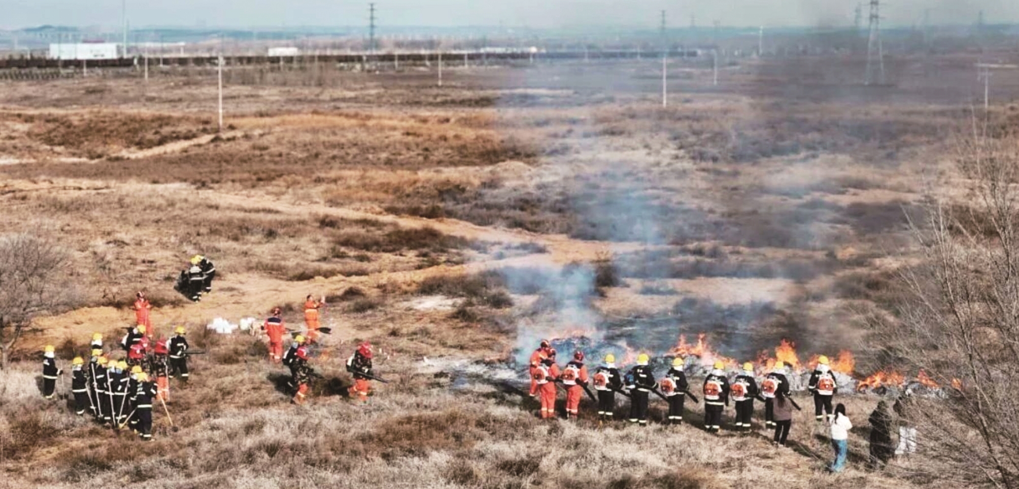 近日,康巴什区组织开展森林草原防灭火应急实战演练。 演练以路人发现演练区域出现火情为背景,针对火场逃生及急救、较小草原火灾处置、突发森林草原树冠大火处置三种不同的火灾情况展开,有效强化了协同作战能力,提升了应急响应和实战处置水平,为森林草原防灭火工作提供有力保障。 郝乐 摄