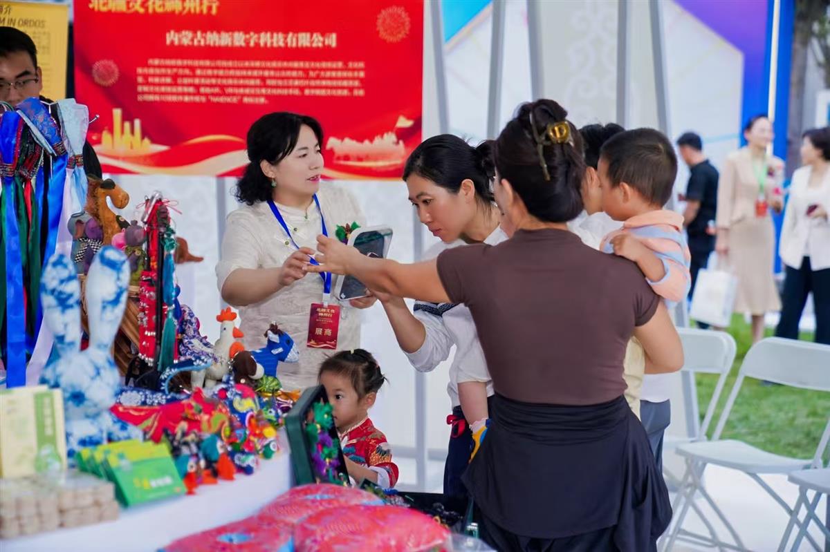 活动现场的展览展示区同样精彩纷呈。非遗文创展览区陈列着鄂尔多斯民间布艺、景泰蓝掐丝珐琅画等独具特色的非遗文创产品,让观众近距离感受北疆文化的艺术魅力;“暖城多味”品鉴区准备了肉食品、奶制品、高原杏仁露等特色美食饮品,让观众在品尝美味的同时,领略鄂尔多斯的饮食文化;“云游鄂尔多斯”体验区则通过盲盒墙互动、线上文旅平台推广等形式,吸引了大量观众参与,有效提升了鄂尔多斯旅游的知名度与影响力。