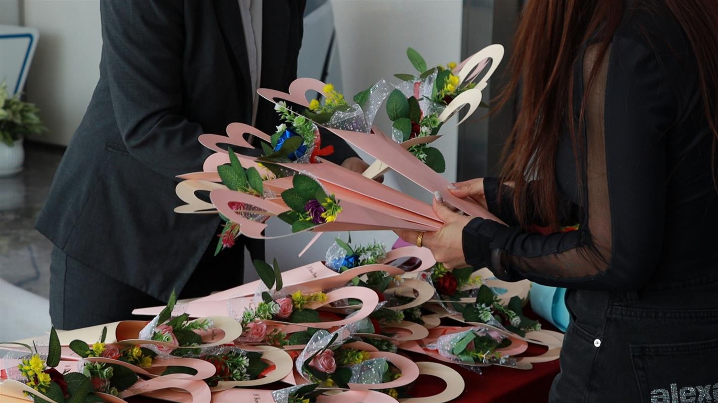 这些承载着汗水的玫瑰,也受到了社会各界的关注和支持。从3月3日至3月8日,鄂尔多斯人才科创中心一楼专门设立了认领点,精致的玫瑰吸引了不少市民和企业驻足参观购买。