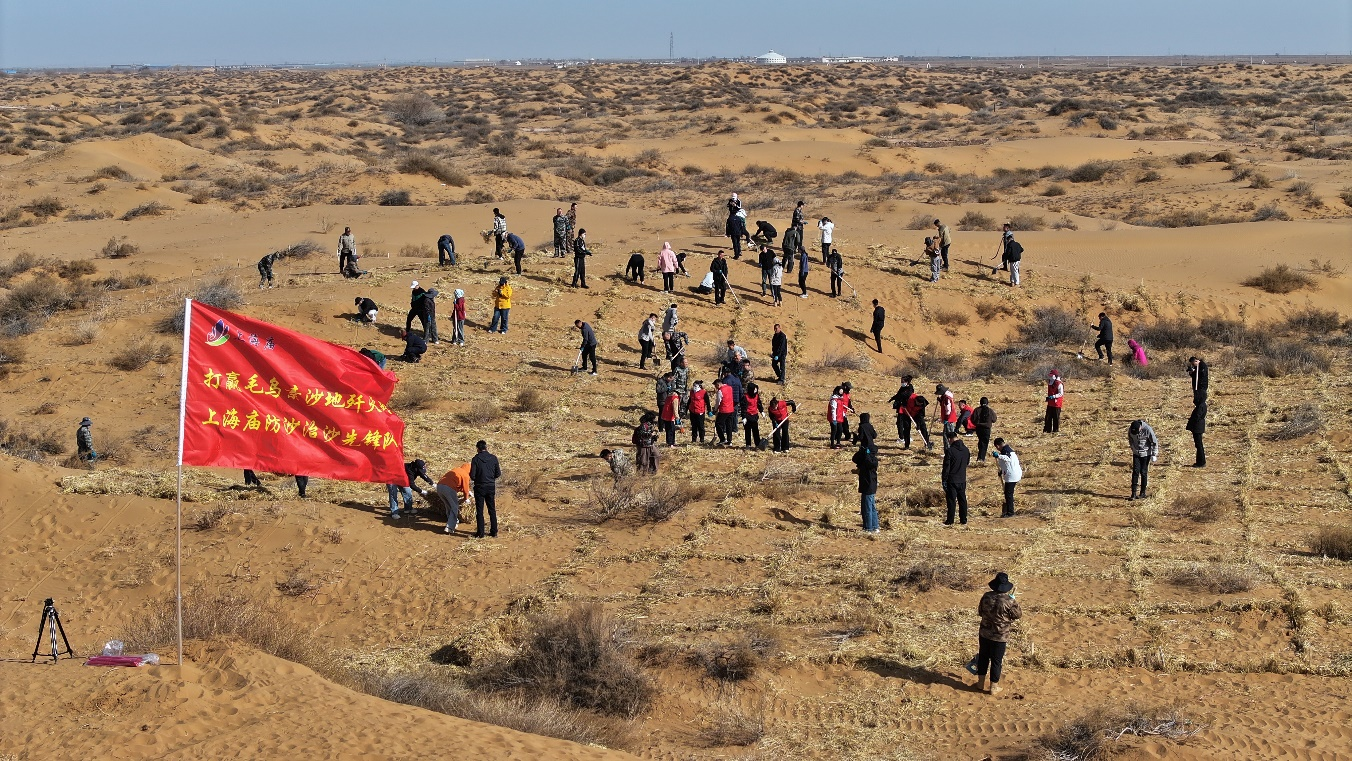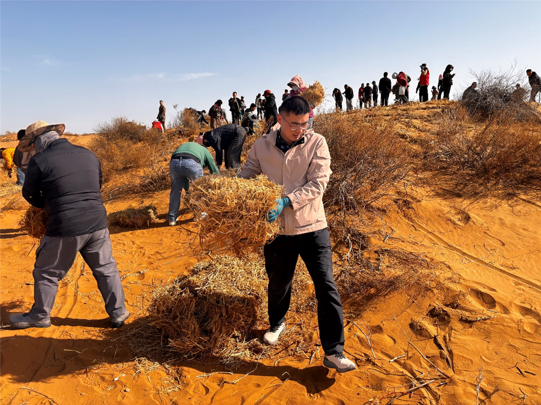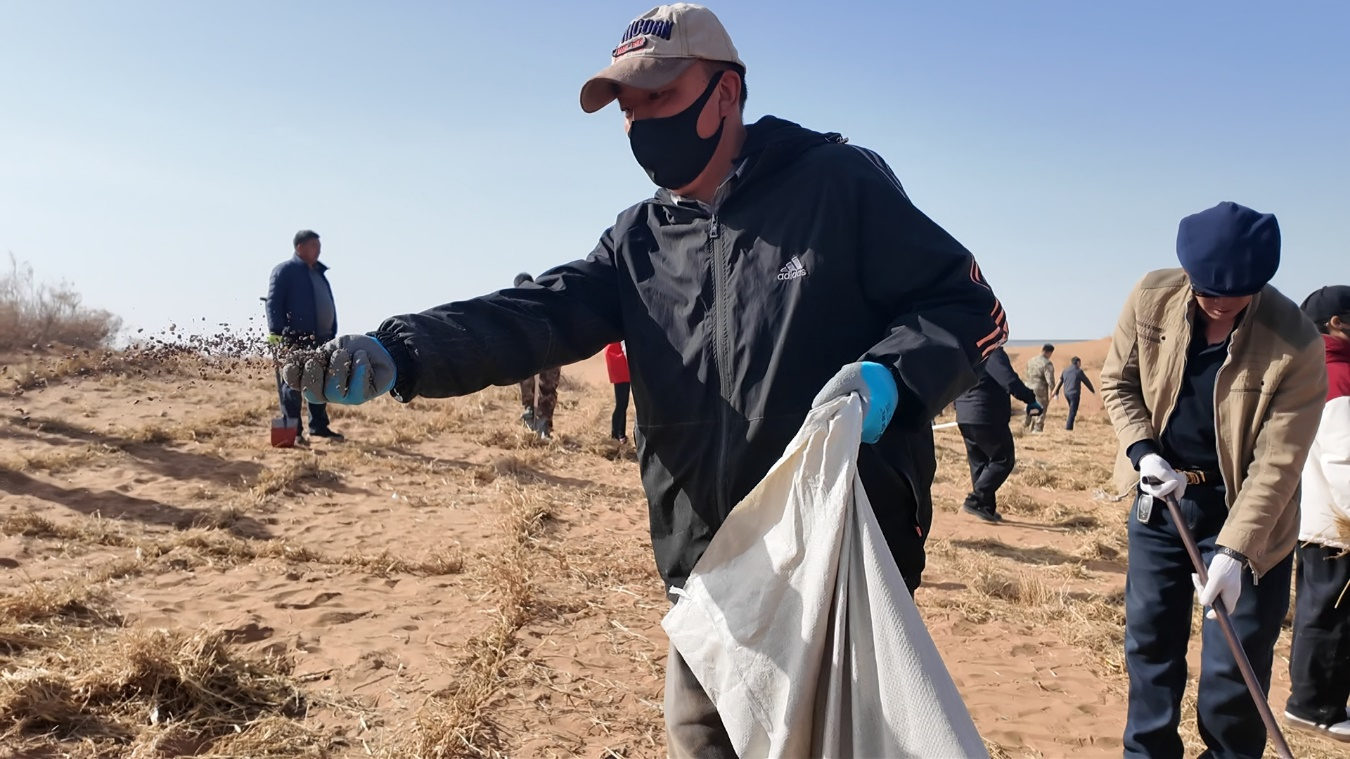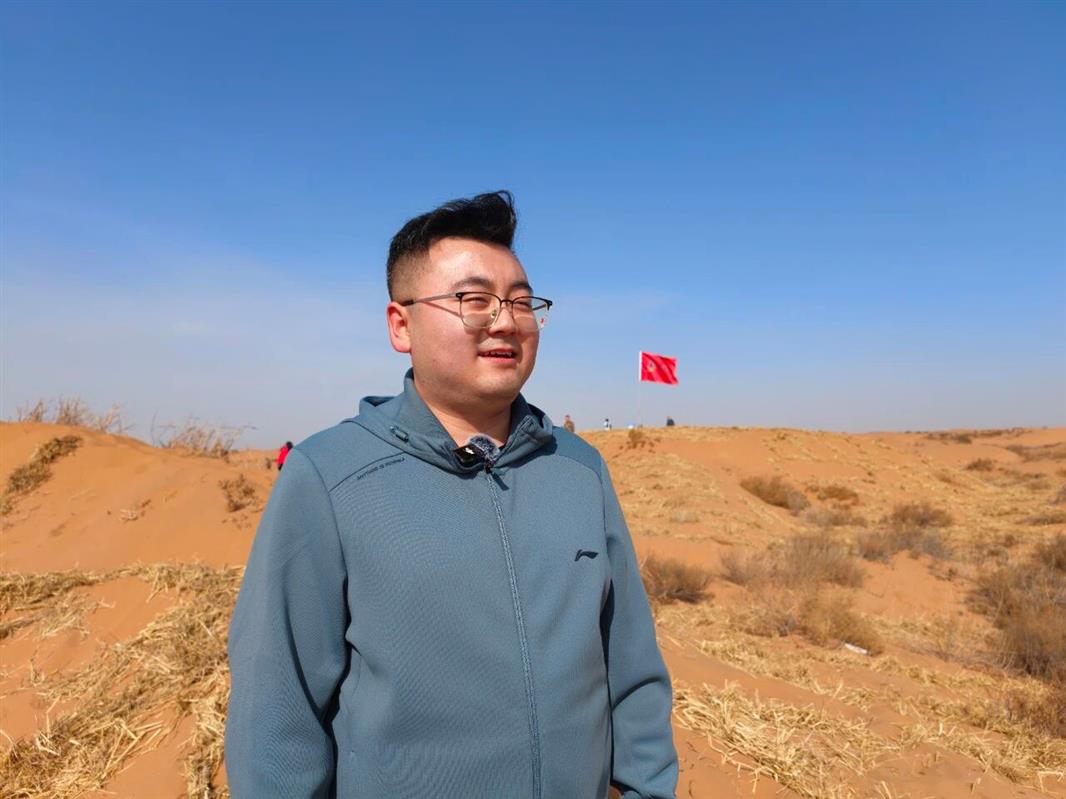 上海庙镇党建办宣传室工作人员张文凯说:“今天参与防沙治沙植树活动,我内心倍感充实,也更加明晰肩上的责任。现场大家分工协作、干劲满满,用行动共同筑牢防沙治沙、守护生态的坚实屏障。”