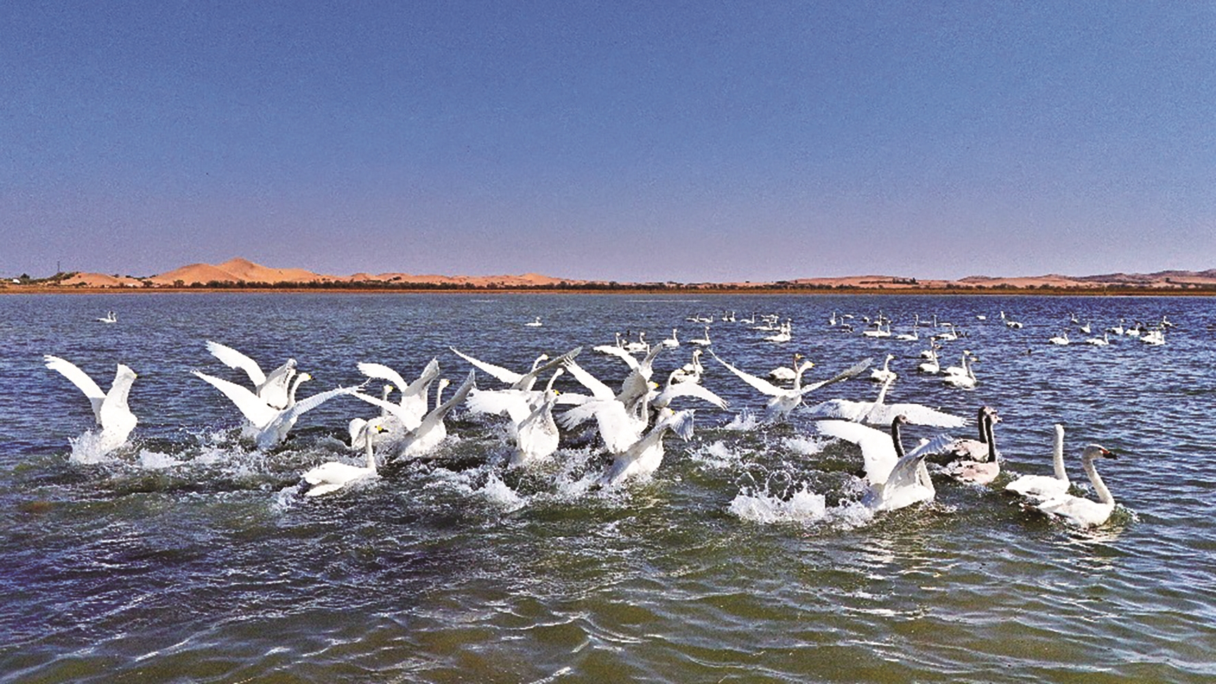 杭锦旗天鹅湖迎来大批迁徙越冬白天鹅