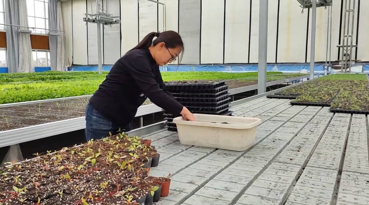 “目前基地种植的花卉品种达十余种,其中不少仍处于育苗阶段。”苗家滩社区智能温室育苗基地工作人员杨艳介绍说,随着气温回暖,种植工作进入繁忙期,工人们正加紧作业,以确保花卉健康成长。
