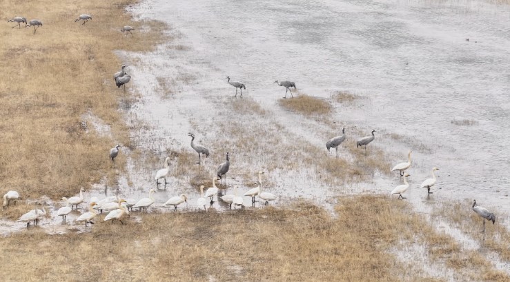 摄影爱好者李星逾说:“现在刚好是开春的时节,一些珍稀的鸟类会来到准格尔旗周边栖息。今天也特别幸运,拍到了一些天鹅、苍鹭之类珍稀鸟类,而且数量特别庞大。可以看出这边的生态治理给这些珍稀鸟类提供了一个非常好的栖息场所。”