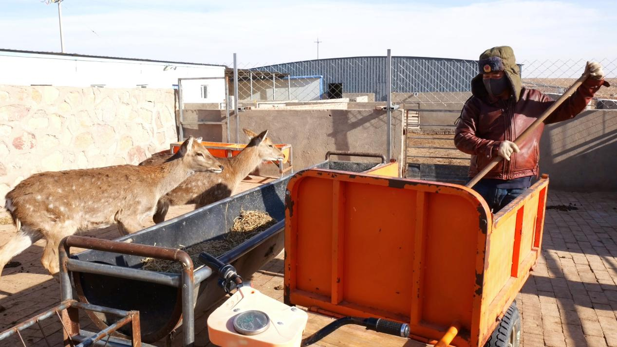 今年6月,信心满满的苏日塔拉图从山东批量引进了五六十只梅花鹿,正式扩大了养殖规模。谈及梅花鹿的养殖优势,他兴致勃勃的说道:“梅花鹿可比养羊省心多了,吃得少还不挑饲料,平时主要喂些玉米秆、苜蓿草就行,养殖成本相对较低。”