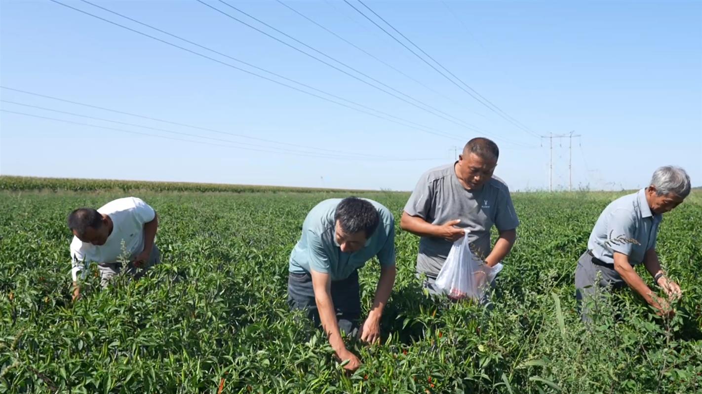 今年,村里流转土地千余亩,其中240亩种植单生满天星朝天椒,200多亩种番茄,其余种玉米。合作社通过订单农业锁定销路,村民可同时获得务工收入、分红和土地租金。杭锦旗名扬种养殖专业合作社负责人王辛福介绍:“辣椒预计9月底全部上市,晾晒后的干辣椒亩产约1300斤,价值4500至5000元。”