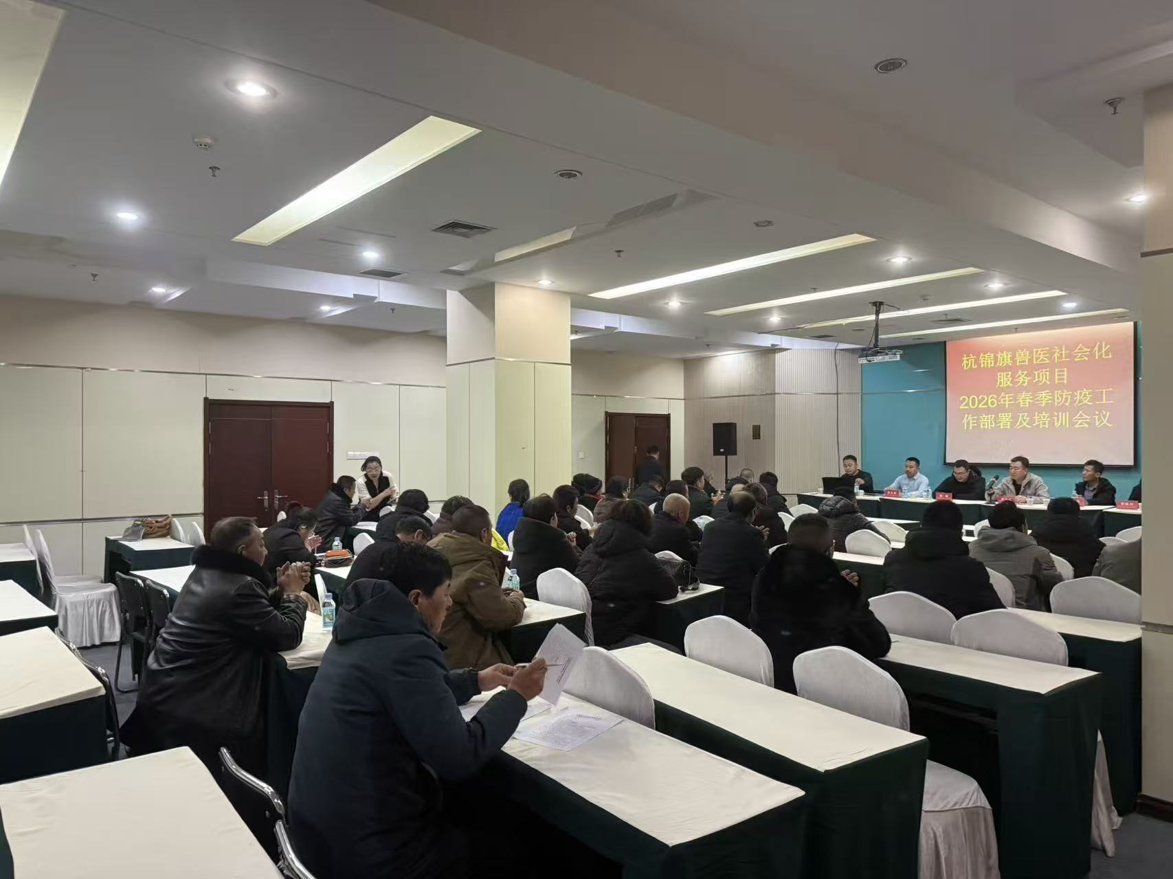 杭锦旗农牧局早研究、早落实,提前制定专项实施方案,细化任务分工,构建“局统筹、中心抓、苏木镇落实、兽医社会化服务组织执行”四级联动体系,统筹调配疫苗、消毒药品等防疫物资,对全旗180余名防疫从业人员进行专业技能培训,夯实人、物双重保障。