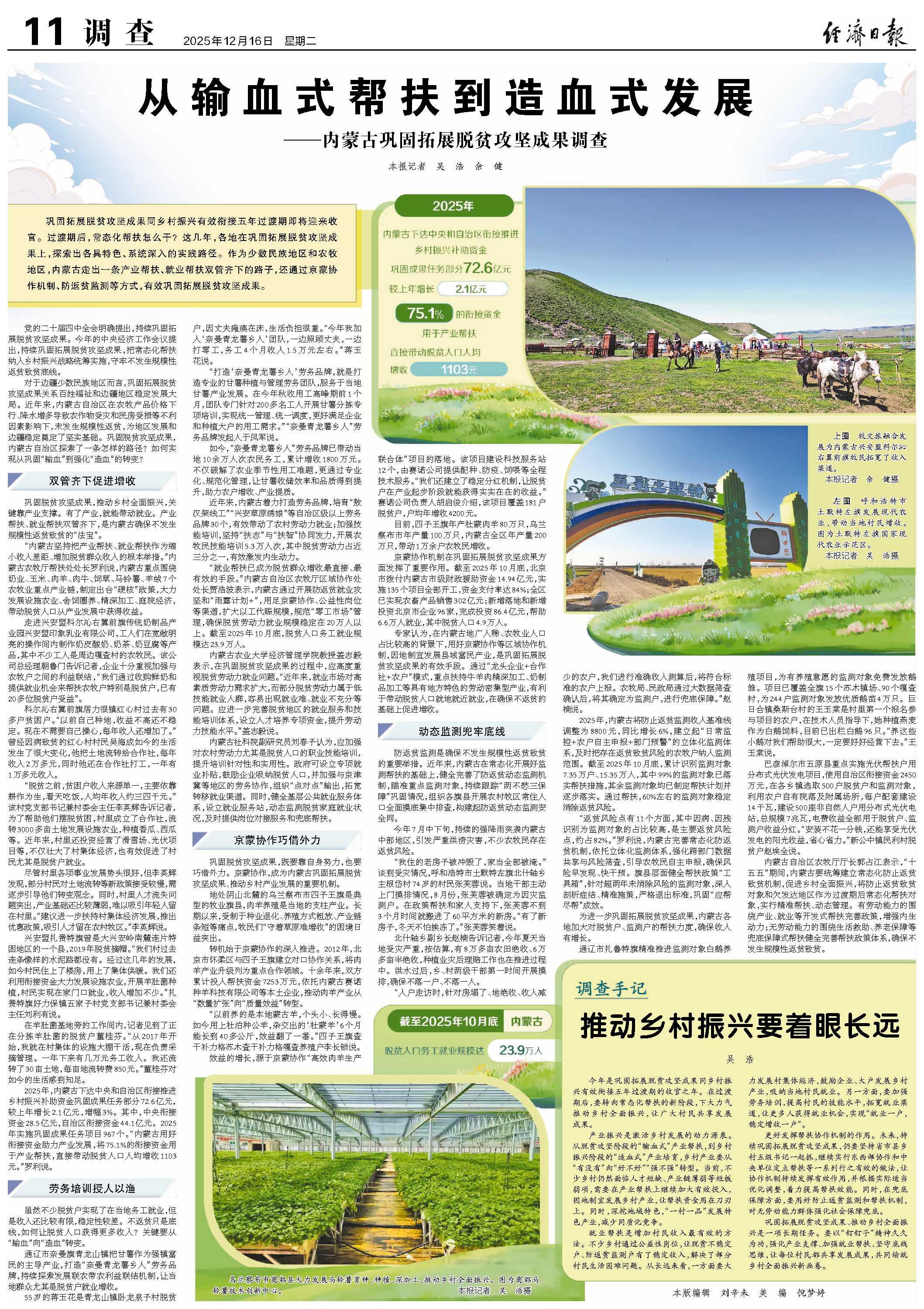对于边疆少数民族地区而言,巩固拓展脱贫攻坚成果关系百姓福祉和边疆地区稳定发展大局。近年来,内蒙古自治区在农牧产品价格下行、降水增多导致农作物受灾和民房受损等不利因素影响下,未发生规模性返贫,为地区发展和边疆稳定奠定了坚实基础。巩固脱贫攻坚成果,内蒙古自治区探索了一条怎样的路径?如何实现从巩固“输血”到强化“造血”的转变?