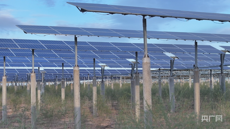 板上发电、板下种植已成为库布其沙漠生态治理的新模式(央广网发 达拉特旗融媒体中心供图)