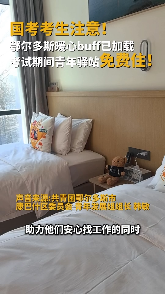 国考考生注意!鄂尔多斯暖心buff已加载,考试期间青年驿站免费住!