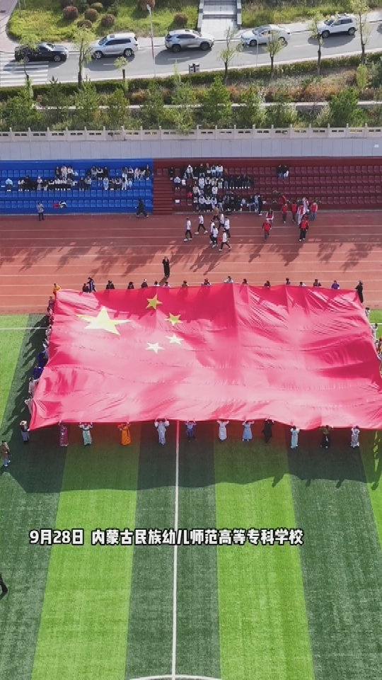 超燃!内民幼师专迎国庆:“石榴籽”方阵托起巨幅国旗