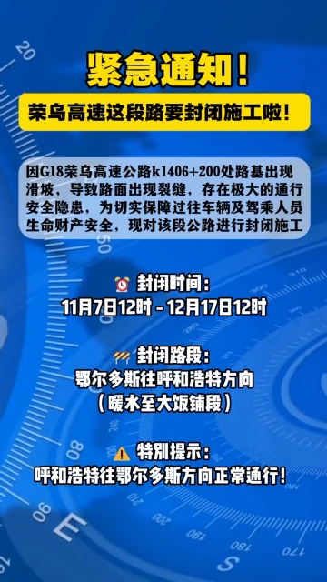 紧急提醒!荣乌高速这段路要封闭施工啦!