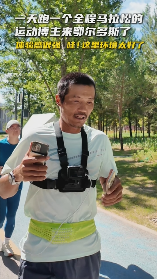 一天跑一个全程马拉松的运动博主来鄂尔多斯了 体验感很强 哇!这里环境太好了#运动#马拉松#堂主lee