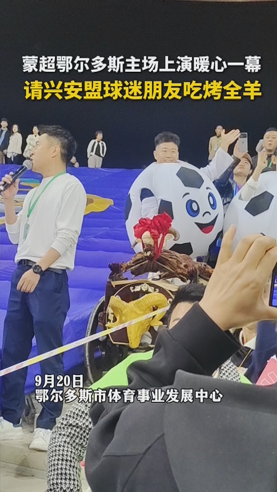 蒙超鄂尔多斯主场上演暖心一幕 请兴安盟球迷朋友吃烤全羊#蒙超联赛#鄂尔多斯