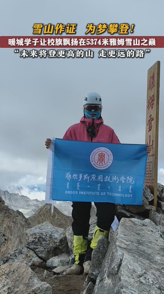 雪山作证 为梦攀登!暖城学子让校旗飘扬在5374米雅姆雪山之巅 “未来将登更高的山 走更远的路”