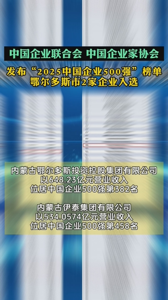 鄂尔多斯市2家企业入选2025中国企业500强榜单