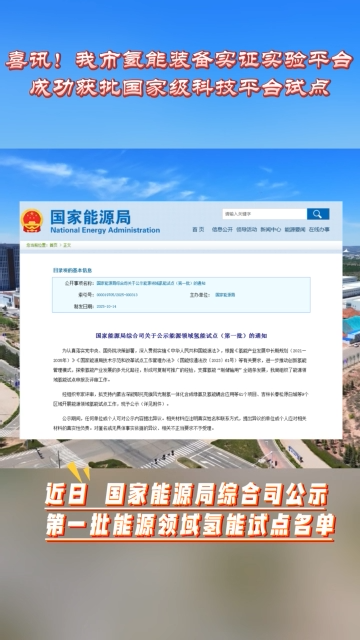 喜讯!我市氢能装备实证实验平台成功获批国家级科技平台试点