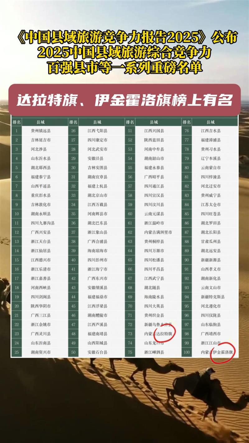 全国百强!鄂尔多斯这2个旗区上榜