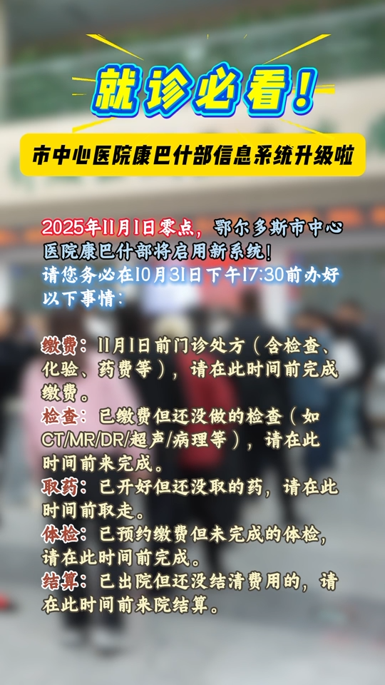 就诊必看 市中心医院康巴什部信息系统升级啦