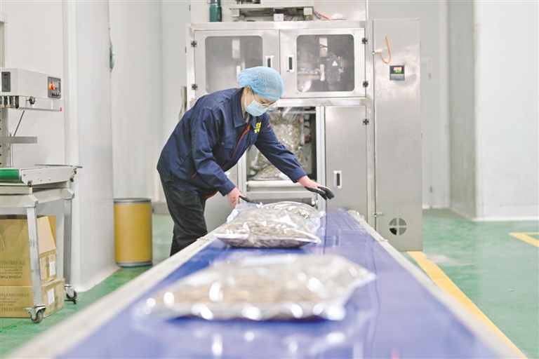 11月23日,在巴彦淖尔市国家农高区李牛牛食品科技股份有限公司,工人们加紧赶制出口葵花籽订单。今年以来,巴彦淖尔市临河区生产加工的高档坚果、鲜辣椒等农产品畅销海内外,1至10月,进出口总额实现25.66亿元,同比增长29.07%。本报记者孟和朝鲁摄