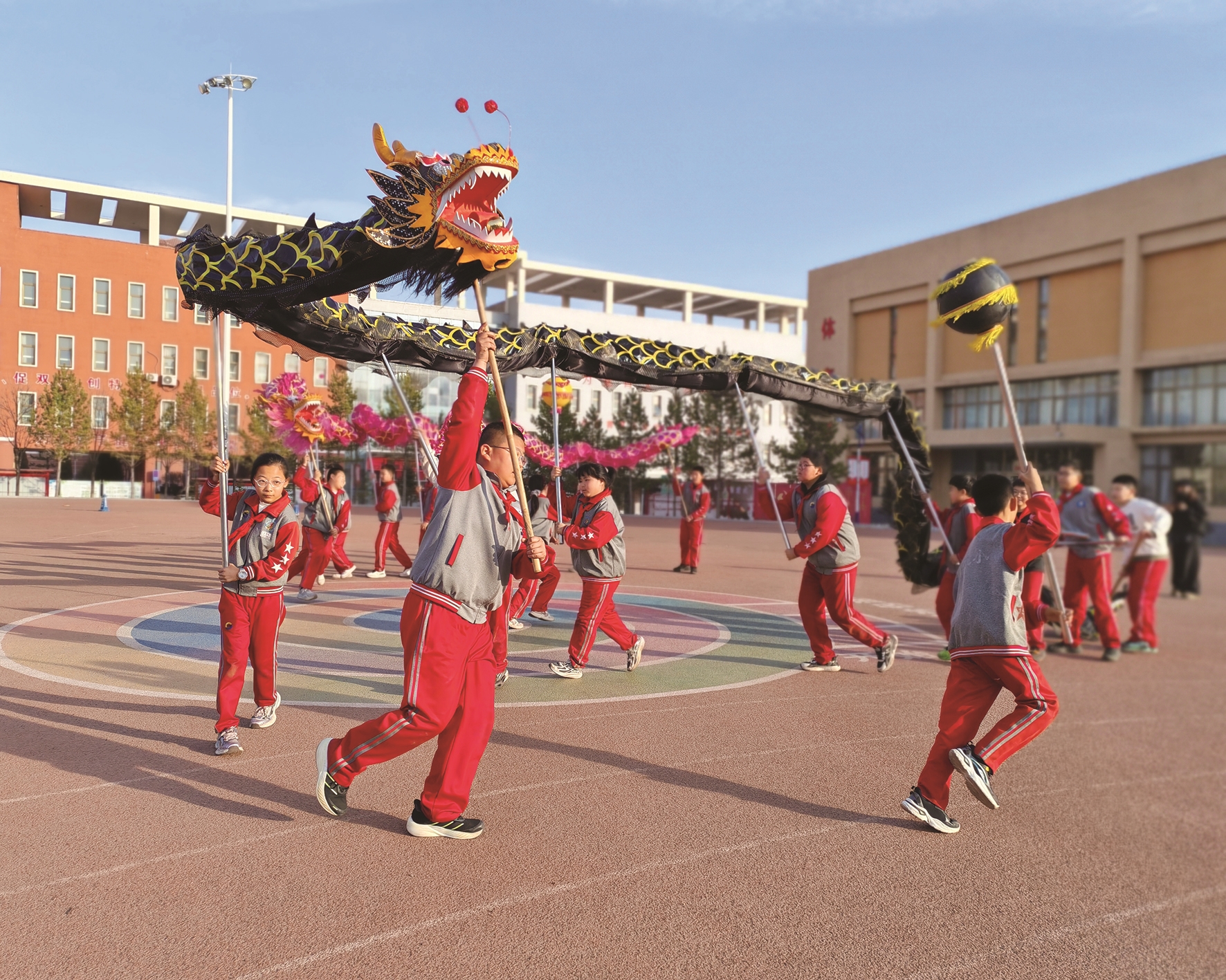 近年来,全市以“双减”政策为抓手,全面推行“零点体育”、特色课后服务等举措,让学生在多元课堂中挖掘兴趣、强健体魄,绘就素质教育新图景。图为近日,准格尔旗薛家湾第九小学学生在社团课上练习舞龙。 市融媒体中心记者 徐佳璐 通讯员 崔凯 黄晨 摄