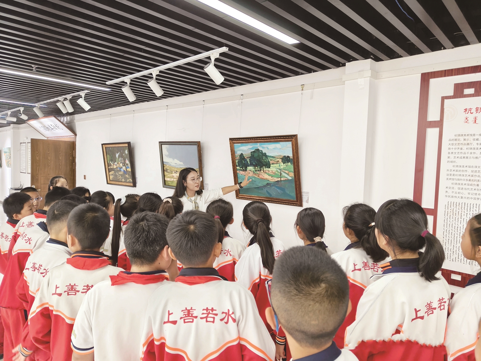 近年来,我市各地通过组织开展形式多样的美育课程和实践活动,将课堂教育与艺术实践有机结合,在丰富学生校园文化生活的同时,进一步提升审美素养,厚植传统文化情怀。图为近日,杭锦旗美术馆组织杭锦旗实验小学的学生开展集参观学习与实践体验于一体的美育实践活动。 【详情】