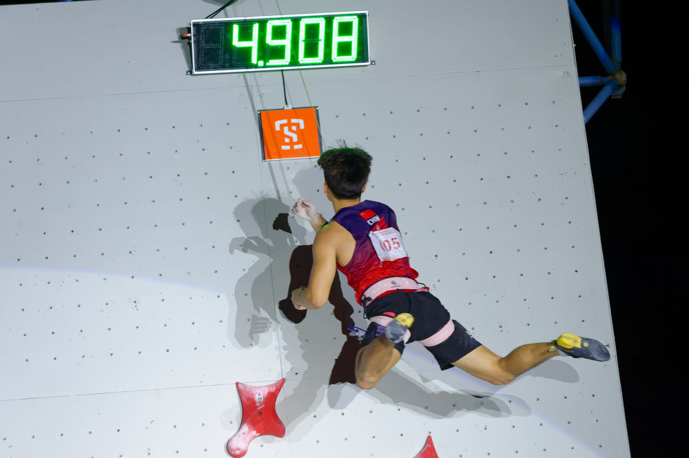 半决赛,伍鹏对阵谢纳赞迪法尔德,两人直至冲刺阶段还难分高下,但此时谢纳赞迪法尔德脚滑失误,更加稳定的伍鹏爬出4秒89取胜。