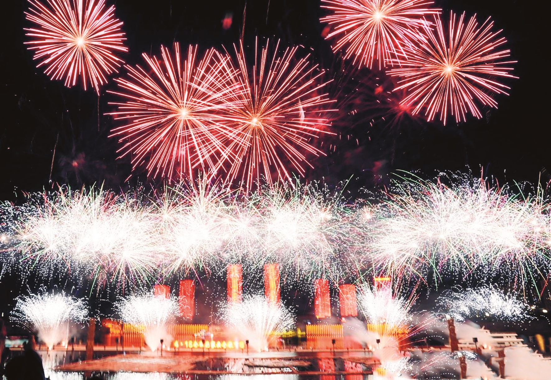 14日晚,鄂尔多斯夜空璀璨如昼,以“全民国家安全教育 走深走实十周年”为主题的“无人机+焰火+喷泉”宣传活动在康巴什乌兰木伦湖区上空精彩上演。