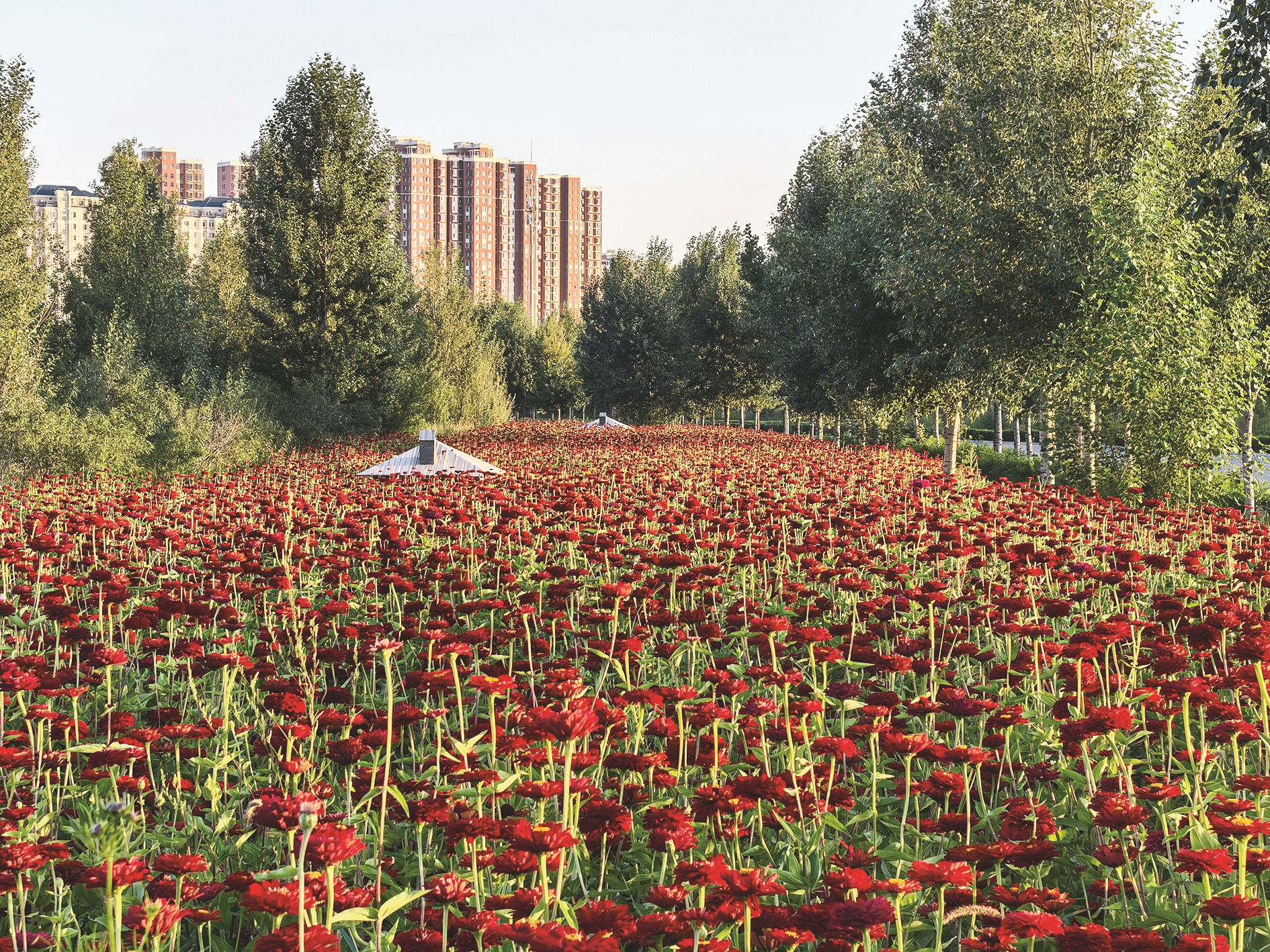 夏秋清幽,百日草与格桑花交织成斑斓地毯,金菊与红蓼点缀旷野,为苍茫大地添上浓重油彩。花香里,飘逸着奶茶的清香,缠绕着牧人的长调,萦绕在天穹之外,迷了长风,醉了岁月。