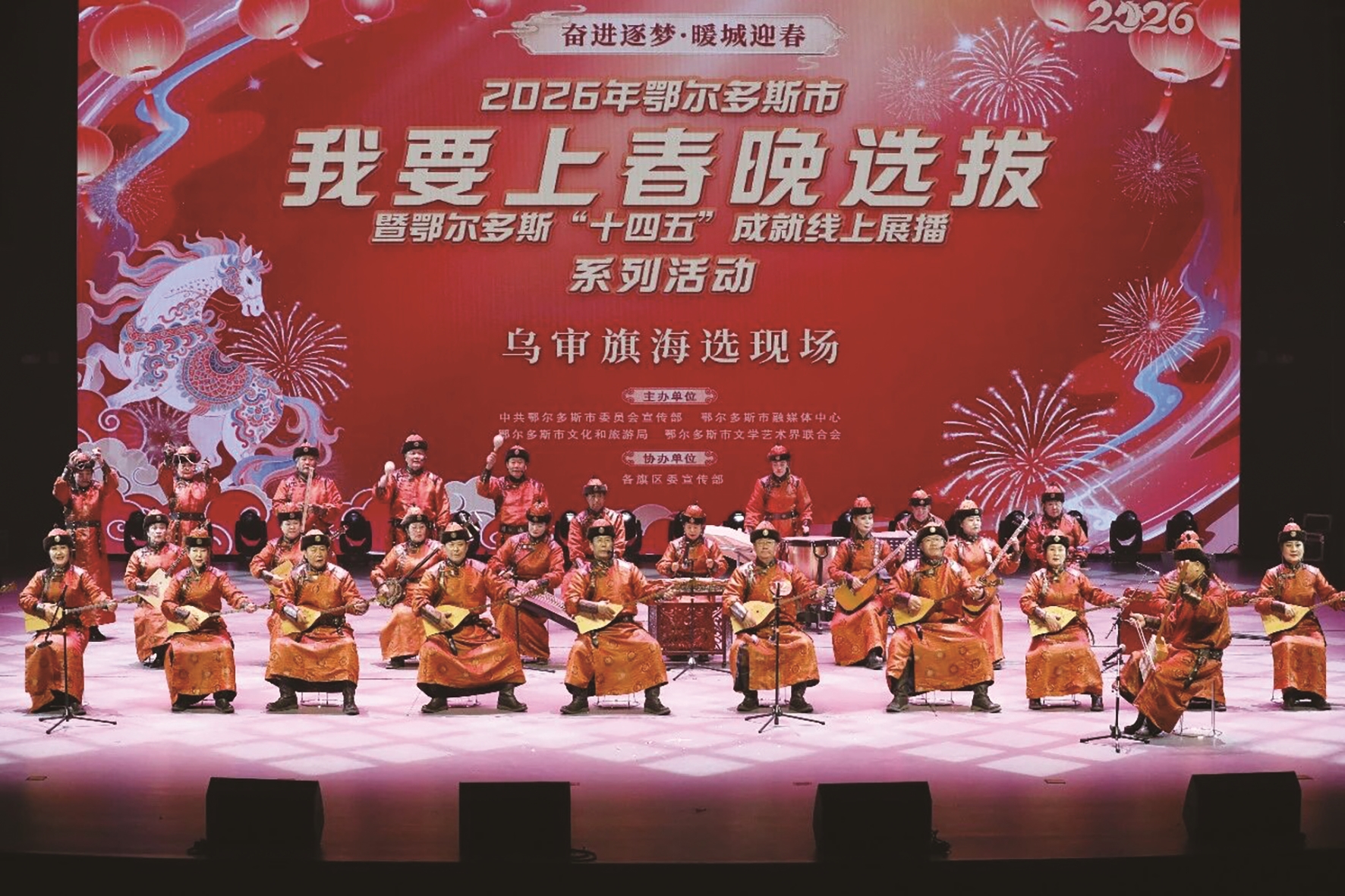 随着2026年春节临近,“鄂尔多斯春晚”全市节目海选正火热进行。活动启动以来,吸引了来自各旗区、各年龄段的基层文艺爱好者积极报名,参与者涵盖农牧民、在校学生、退休职工等多元群体,展现出我市群众文化的广泛基础与蓬勃活力。图为近日,2026年鄂尔多斯市“我要上春晚”选拔暨“十四五”成就线上展播系列活动乌审旗海选现场。 吕赵腾 摄